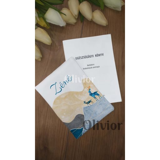 Kék szarvasos egészségügyi kiskönyv borító névvel nyomott mintával