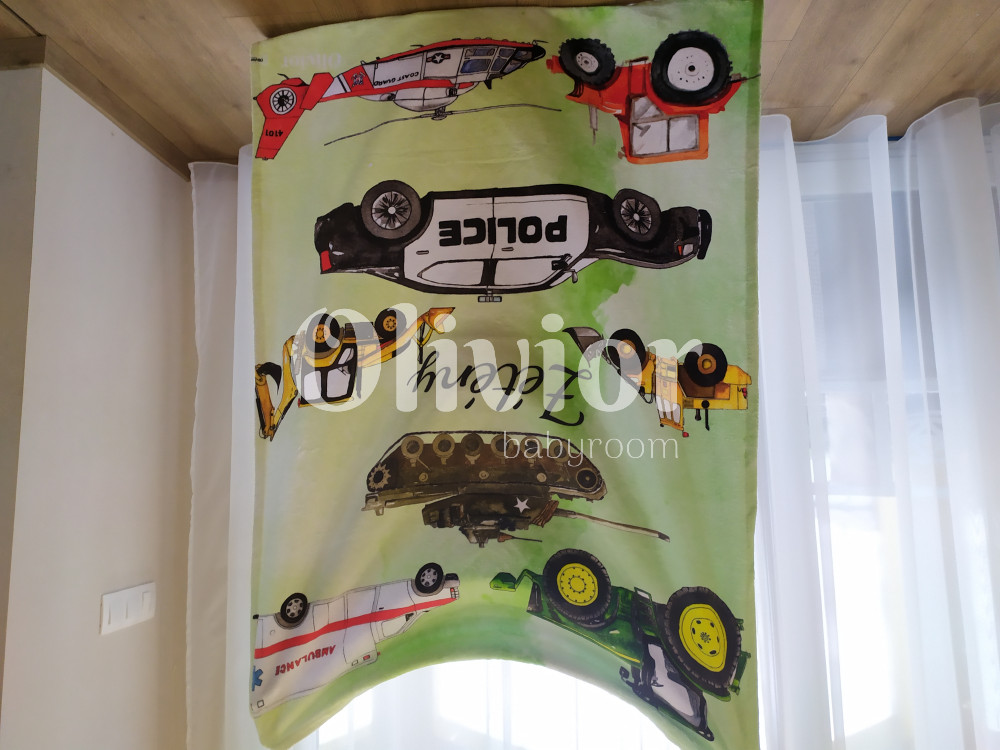Jármű mintás pöttyös pléd.